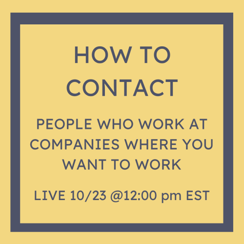 Join me on Thursday, 10/30 @ 12:00 pm EST on Zoom to learn how to contact recruiters.